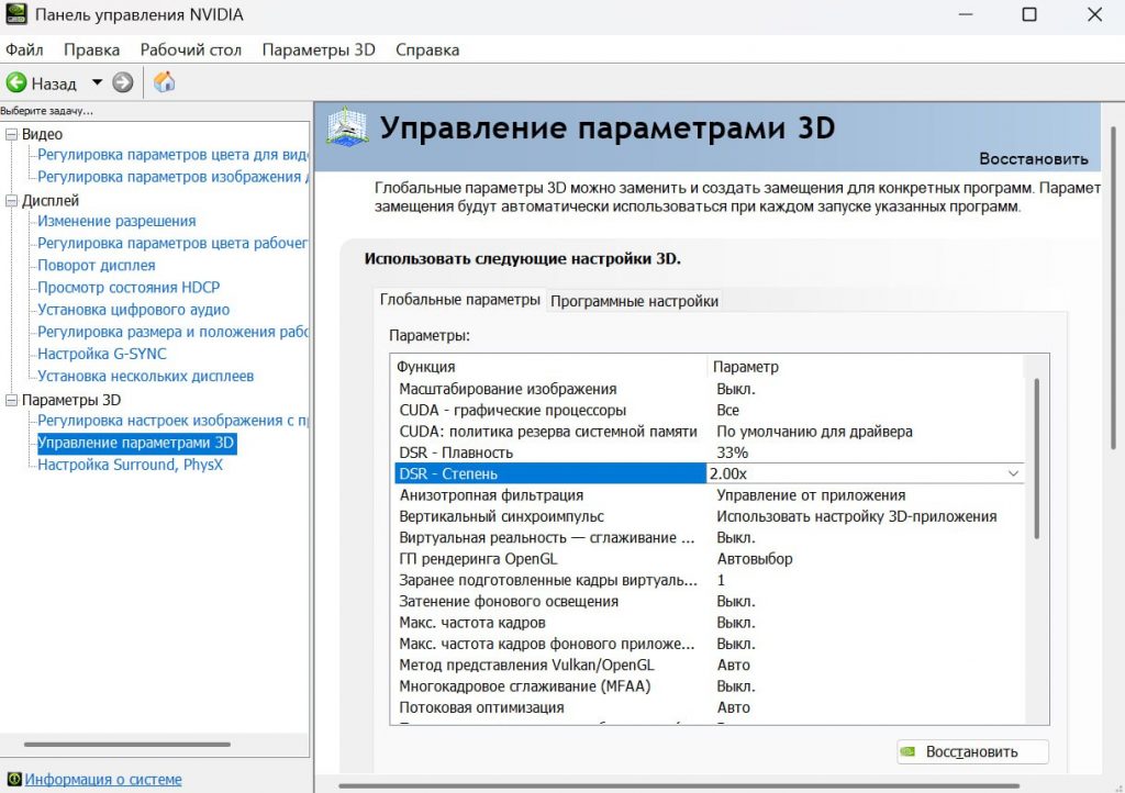 Зайдите в панель управления NVIDIA. Там вам нужно перейти в раздел «Управление параметрами 3D, а затем найти параметр «DSR — Степень». Здесь важно активировать не старые множители, а именно вариант с приставкой «DL», например, «1.78x DL». Буквы «DL» означают, что для масштабирования будет использоваться глубокое обучение, что дает значительно лучший результат без артефактов некратного масштабирования. Следующий важный ползунок находится чуть выше — «DSR — Плавность». Его значение лучше установить в районе 70-80%. Это убережет картинку от излишней резкости и цифрового шума, который часто появляется при агрессивном шарпенинге. Без этой настройки результат может выглядеть перешарпленным.