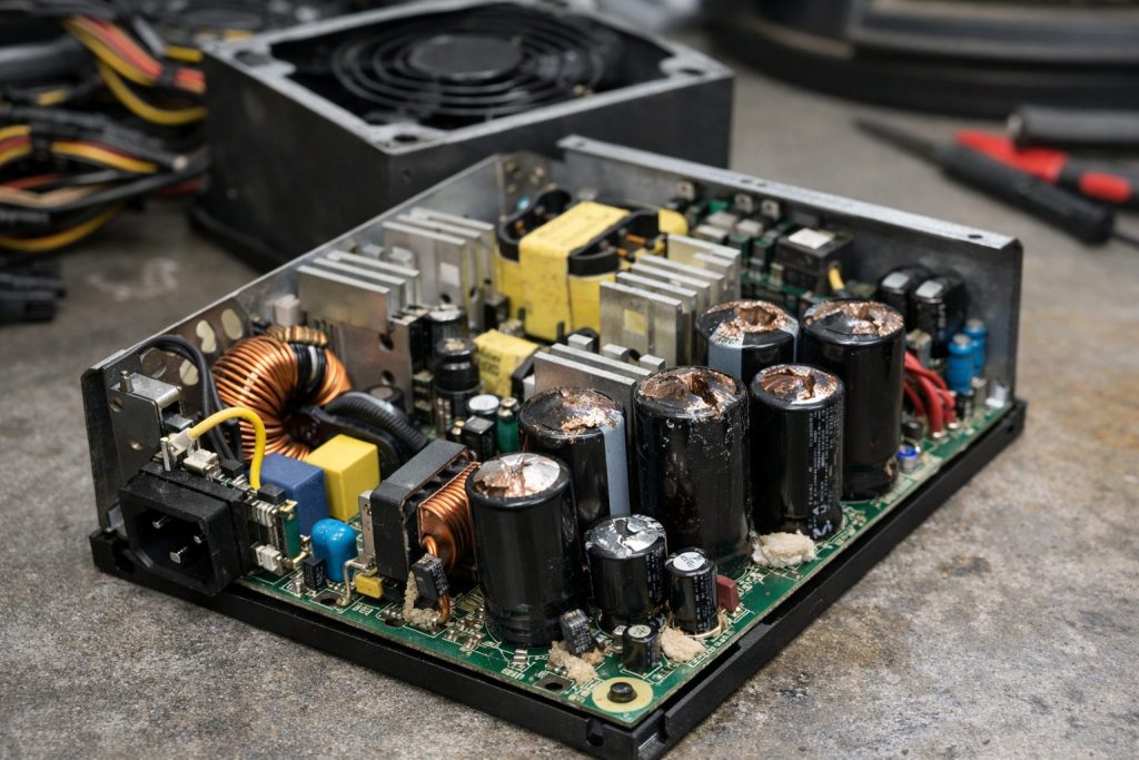 Одной из редких, но возможных причин является неисправность блока питания. Со временем конденсаторы внутри него могут вздуваться, что приводит к некорректной подаче напряжения и ложным срабатываниям системы запуска.