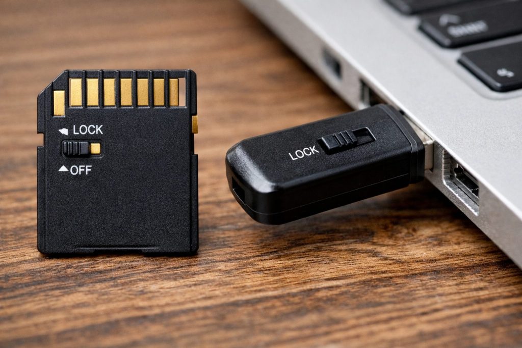 Иногда решение лежит на поверхности. Если вы столкнулись с тем, что не удаляются файлы с флешки, первым делом стоит внимательно осмотреть само устройство. Некоторые модели USB-флешек, особенно те, что используются фотографами (SD-карты) или старые модели флешек, имеют на корпусе миниатюрный физический переключатель. Это аппаратная защита от записи. Если рычажок сдвинут в положение Lock, то никакие программные ухищрения не помогут, пока вы просто не передвинете его обратно. Внимательно осмотрите корпус: возможно, вы случайно задели переключатель, когда вставляли накопитель в USB порт.